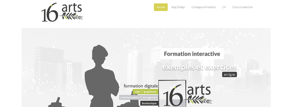 llustration n°3.1.3- Homepage de 16-arts.com, supports et exercices pour formations multimedia