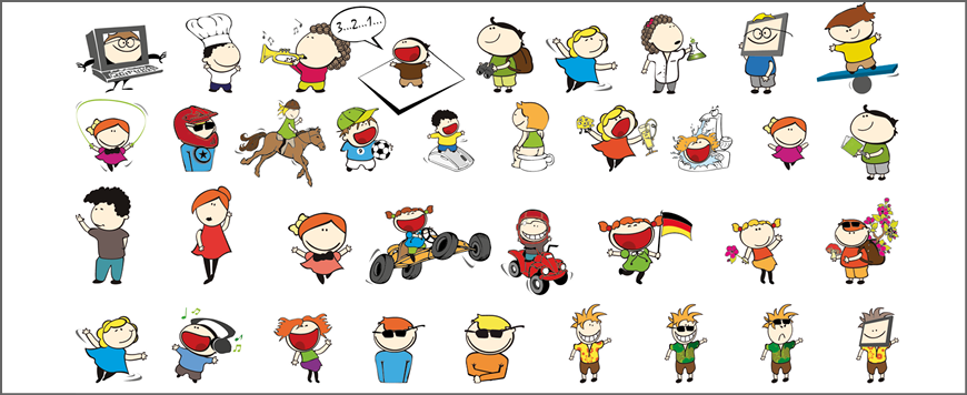 La dernière charte en date (Smothes, petits personnages (voir illustration 2.1.5) ), a suivi l’idée d’une identification plus colorée et symbolique pour les enfants. Ainsi ont été créées des planches d’illustrations de bonhommes qui sont actuellement utilisées dans tout le centre.